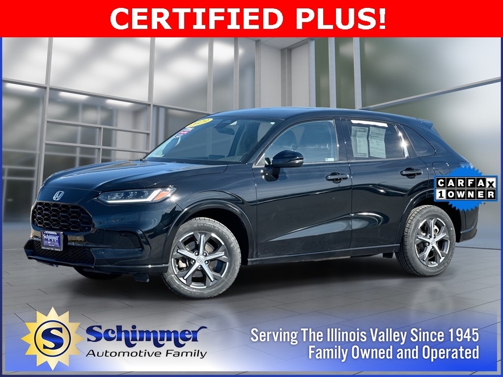 Here's some more details on this Vehicle: Used 2023 Honda HR-V EX-L in stock at Schimmer Ford Lincoln Hyundai in Peru, Illinois. This used HR-V comes in Crystal Black Pearl with Black w/Leather-Trimmed Seats. Stock # H832601 and Vin # 3CZRZ2H75PM702505. 2.0L I4 DOHC 16V i-VTEC CVT