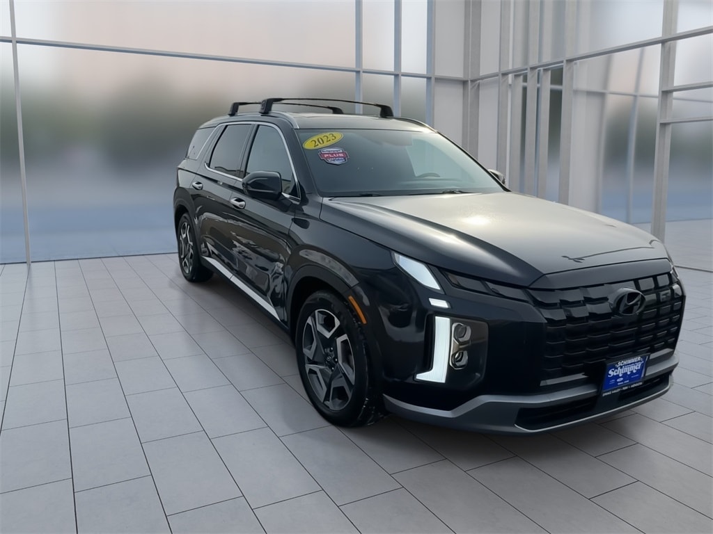 Here's some more details on this Vehicle: Used 2023 Hyundai Palisade Limited in stock at Schimmer Ford Lincoln Hyundai in Peru, Illinois. This used Palisade comes in Moonlight Cloud with Black Leather. Stock # H824501 and Vin # KM8R5DGE7PU645745. V6 8-Speed Automatic with SHIFTRONIC