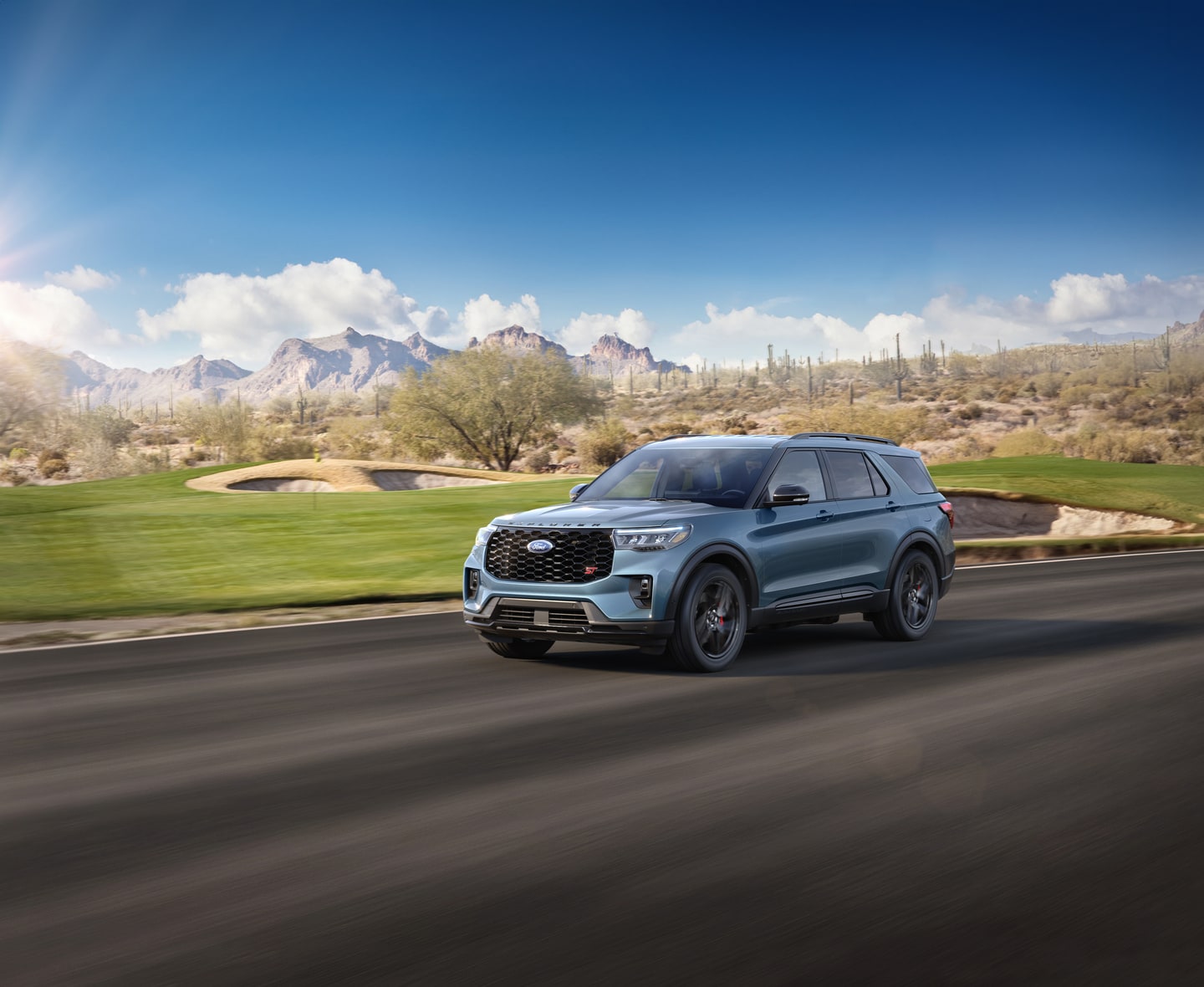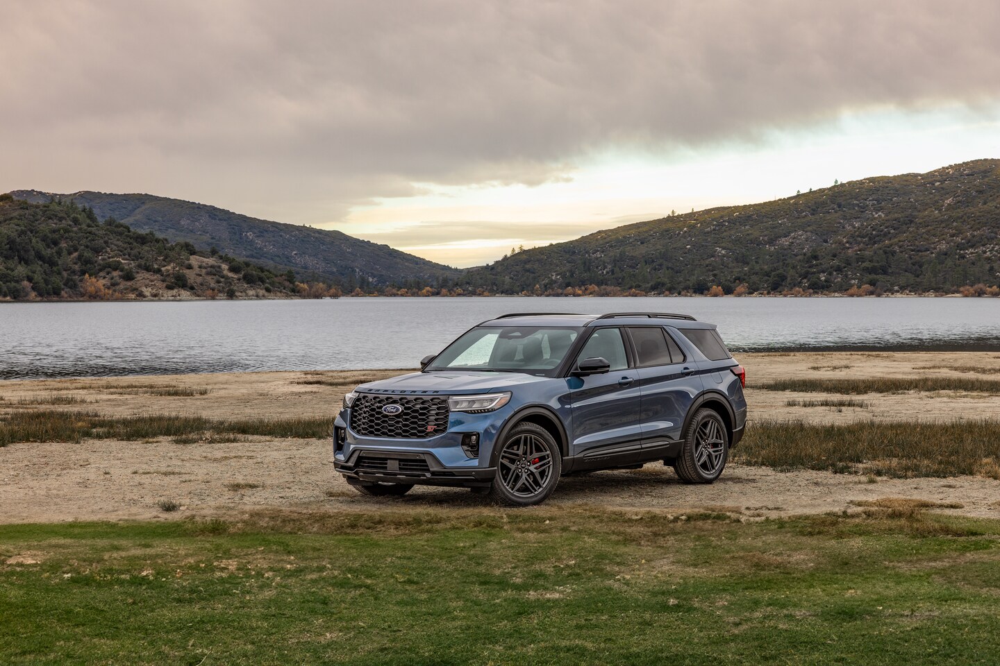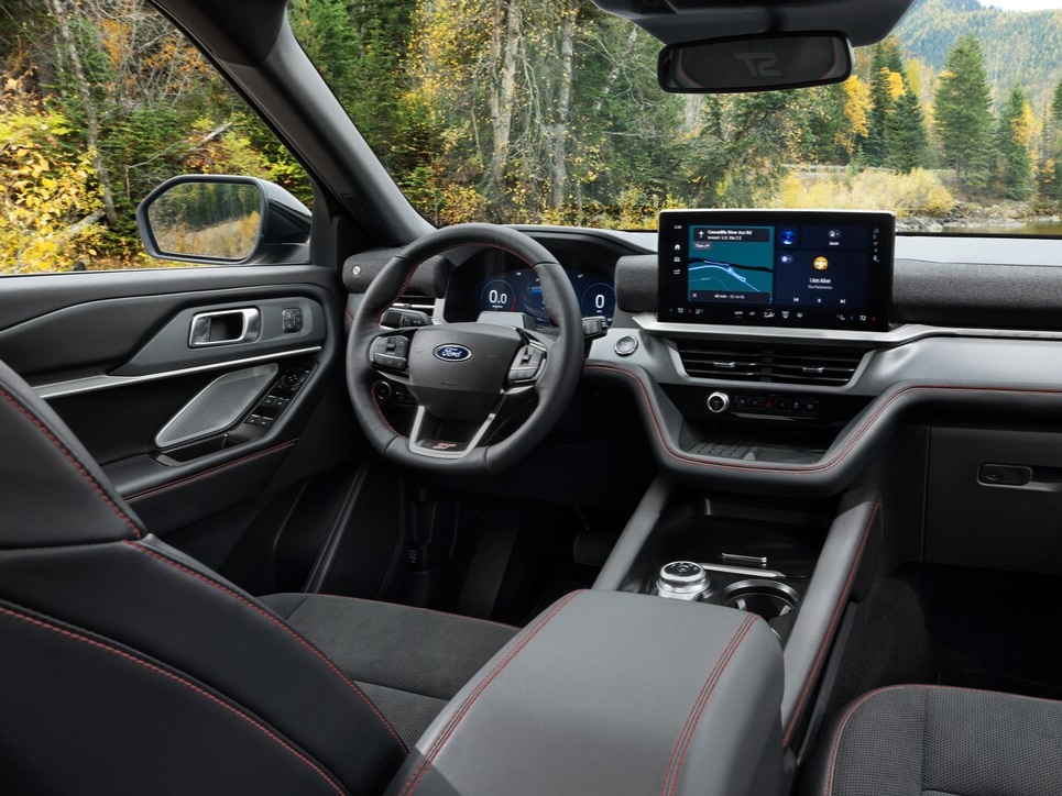 - Explorer ST -- The performance flagship boasts a 400-horsepower V-shaped six-cylinder engine, red brake calipers, quad exhaust tips and well-bolstered sport seats.