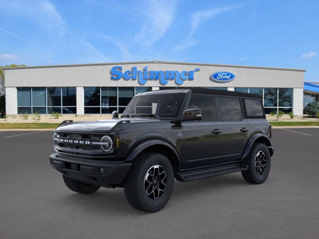 Brand New 2025 Ford Bronco Outer Banks in stock at Schimmer's in Peru, Illinois! This Bronco comes in Shadow Black with Black Onyx Leather interior. Stock # T8784. For the most current special offers, rebates, and low APR rates available, please call or e-mail and have the stock number available. 19/21 City/Highway MPG
