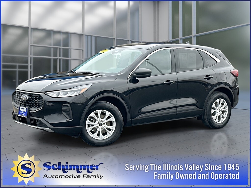 Here's some more details on this Vehicle: Used 2023 Ford Escape Active in stock at Schimmer Ford Lincoln Hyundai in Peru, Illinois. This used Escape comes in Agate Black Metallic with Ebony Black Cloth. Stock # T884401 and Vin # 1FMCU9GN1PUA78163. 1.5L EcoBoost 8-Speed Automatic