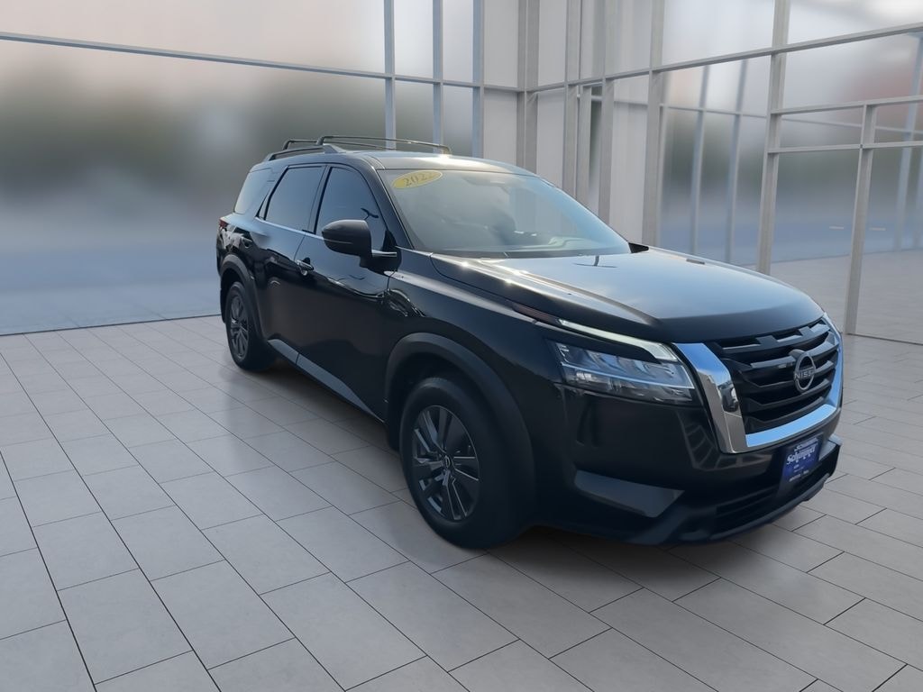 Here's some more details on this Vehicle: Used 2022 Nissan Pathfinder SV in stock at Schimmer Ford Lincoln Hyundai in Peru, Illinois. This used Pathfinder comes in Super Black with Light Gray Cloth. Stock # H812101 and Vin # 5N1DR3BC5NC213012. V6 9-Speed Automatic